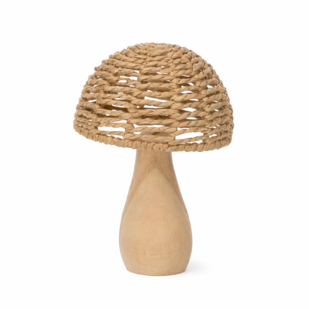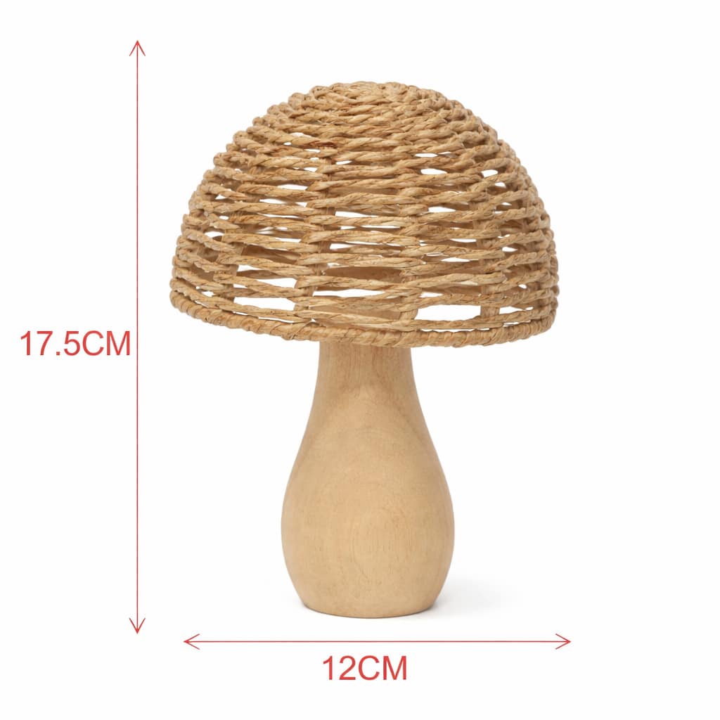 Este hongo decorativo tejido con base de madera es una pieza que combina artesanía, calidez y diseño natural, convirtiéndose en un elemento decorativo versátil y atemporal para distintos espacios del hogar. Su estética orgánica y materiales nobles lo hacen destacar como un objeto decorativo que aporta textura, armonía y personalidad sin recargar el ambiente.