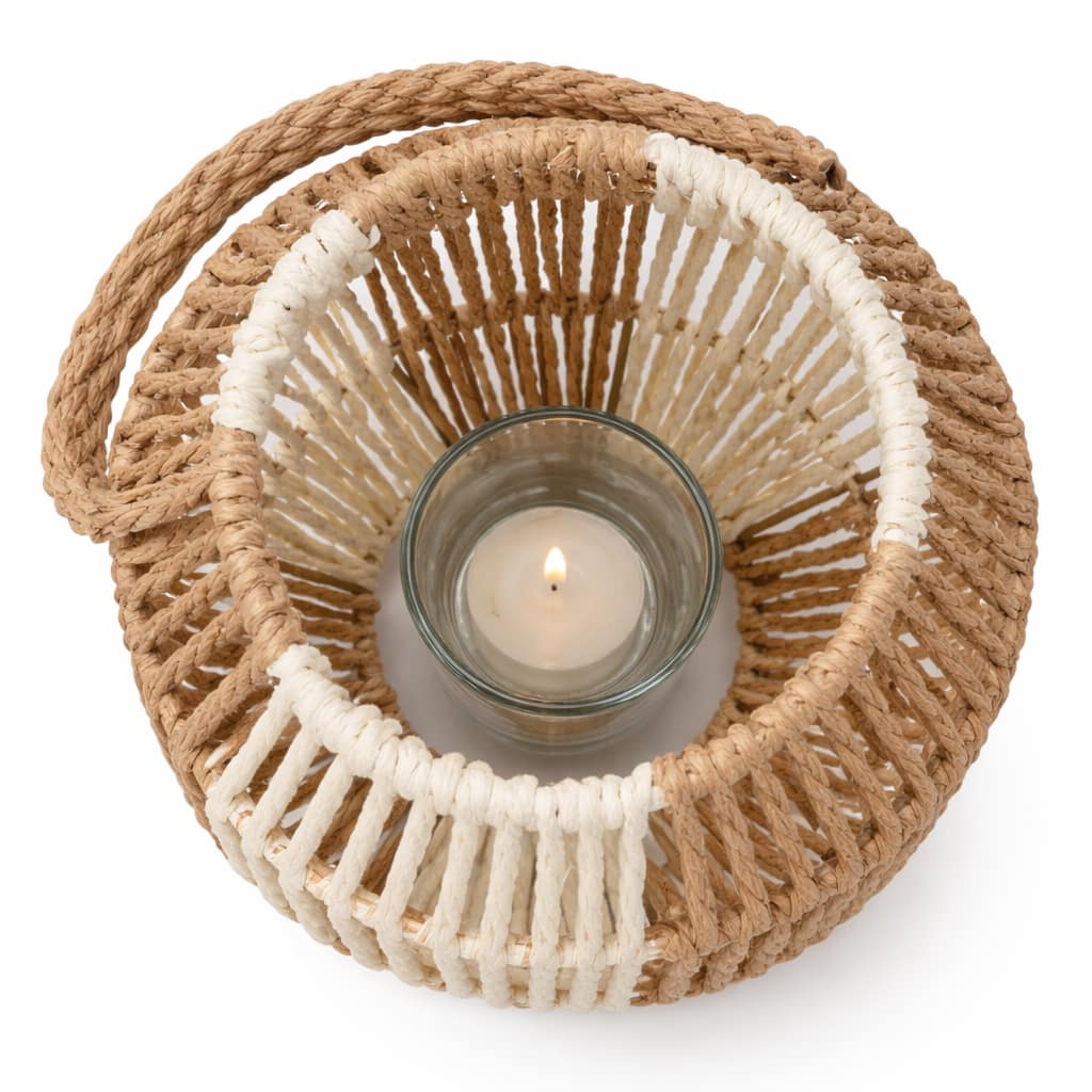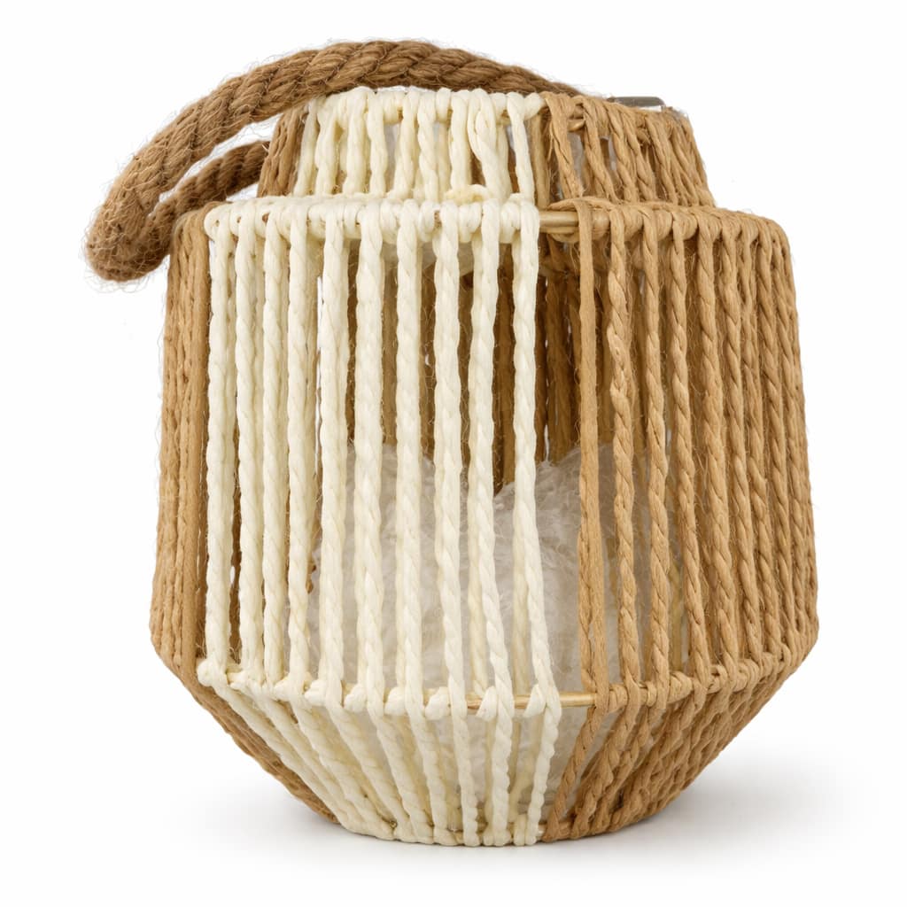 Esta lámpara de mesa boho destaca por su estructura tejida tipo ratán, cuidadosamente elaborada para permitir que la luz se filtre suavemente entre las fibras. El resultado es una iluminación ambiental cálida que genera sensación de confort y bienestar.