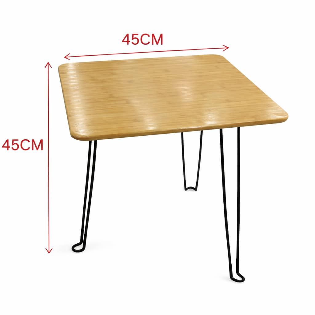 Mesa lateral plegable de bambú 45×45 cm con patas metálicas